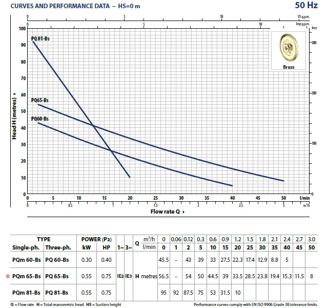 The PQ-BS (Brass Body) Pumps with Peripheral Impeller are designed to suit a wide range of applications, with features including: