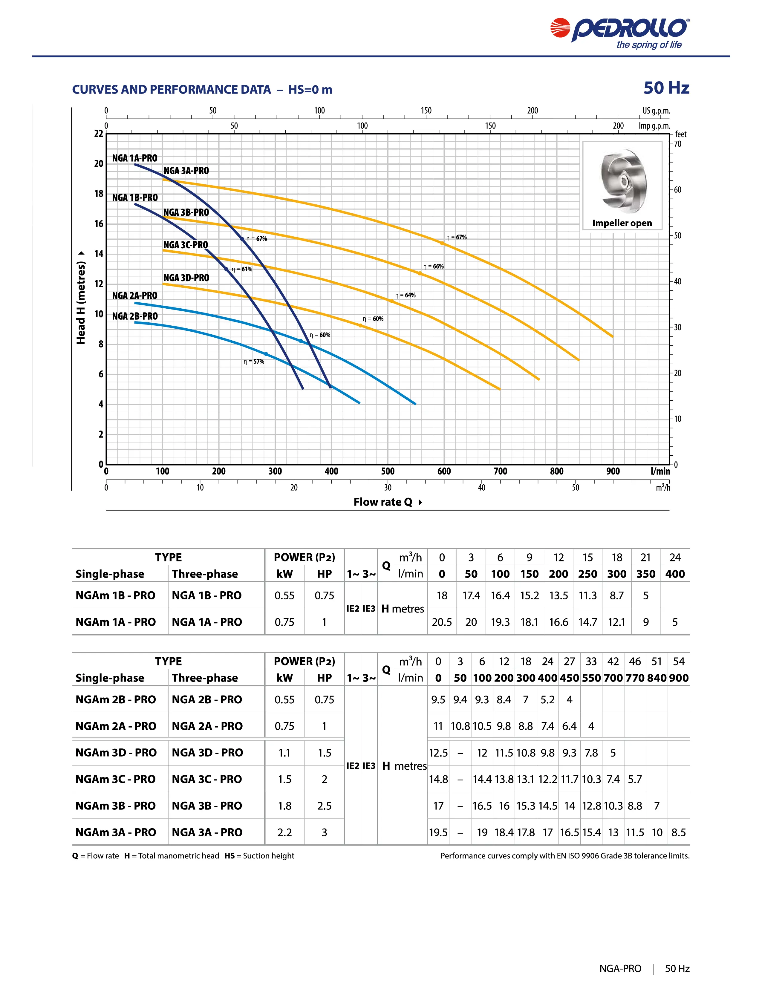 Pedrollo NGA Pro Open Impeller Pump Curve